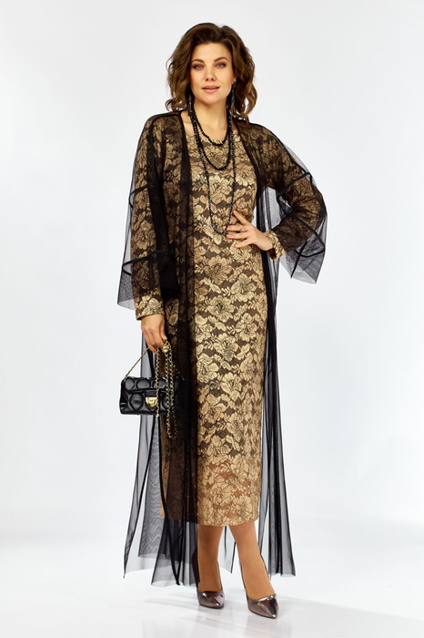 Элегантный и утонченный комплект созданный для особых случаев  в основе платье  полуприлегающего силуэта на трикотажной подкладке из кружевного гипюра с контрастным рисунком в цветочной тематике. Сверху легкая накидка шазюбль из прозрачной сетки , она мягко драпируется , создавая воздушный легкий силуэт  длинные рукава и свободный крой добавляют образу благородства и загадочности.