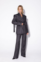 Юбка комплекта из эффектного трикотажного полотна на основе велюра с пайетками в стиле «карандаш» на подкладке, чуть зауженная к низу. В среднем шве расположены потайная молния и открытый разрез, высотой 32 см. На линии талии расположены классические вытачки, пояс внутренний, обтачной. Длина изделия по среднему 82-83 см.