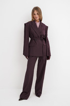 Комплект, состоящий из жакета и юбки. Жакет полуприлегающего силуэта на подкладке с рельефами по переду и спинке, с отрезным поясом по талии и накладными карманами с клапаном. Рукав втачной двухшовный длинный, воротник стояче-отложной. Застежка центральная бортовая на обтяжные пуговицы. Юбка на подкладке, зауженная к низу с притачным поясом и на резинке в размерах 50-60. Застежка в юбке на потайную тесьму-молнию в среднем шве заднего полотнища и шлицей.