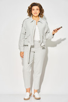 Модель силуэта оверсайз, с длинным свободным рукавом покроя реглан. Воротник отложной. Застежка центральная на молнию с дополнительной планкой. По полочке расположены прорезные карманы с клапаном. Рукав длинный, на притачной манжете с застежкой на пуговицу. Спинка с центральным швом, по низу заложены складки. По низу изделия, спереди расположен декоративный пояс с пряжкой для более комфортного прилегания. Модель на шелковой подкладке.