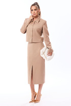 Юбка на притачном поясе с резинкой. Переднее полотнище с наклонными карманами к боковым швам и складками от пояса. Заднее полотнище с потайной молнией в среднем шве и складками от пояса. Юбка на подкладке.