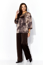 Брюки на поясе. Передние половинки со складками от пояса и наклонными карманами к боковым швам. Задние половинки с карманом в верхней части.