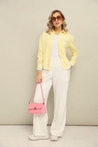 Комплект 2ка, состоящий из джемпера и брюк. Джемпер свободного объёма, оригинального кроя, с имитацией топа и открытыми плечами. Горловина круглая, по спинке застежка на петлю и пуговицу Отделка горловины джемпера и манжеты выполнены из довязов в контрастном цвете.  Брюки широкого объема, прямого силуэта. На передних половинках брюк заутюжены стрелки, переходящие в складки по линии талии. На задних половинках также заутюжены стрелки. В боковых швах расположены карманы. Застежка-гульфик. Пояс отрезной, притачной. В задней части пояса вставлена эластичная тесьма (резинка). На пояс настрочены шлевки. Выступающая часть пояса застегивается на петлю и крючок. Рост модели 170, размер 48.                    СОВЕТ ОТ СТИЛИСТА: из обуви отлично подойдут лодочки. Для образа "выходного дня" сделайте выбор в пользу кроссовок или кед.