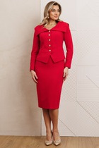 Трикотажный костюм 2ка, состоящий из джемпера и юбки. Джемпер прямого кроя свободного силуэта. Горловина и манжеты низа рукавов декорированы экокожей. Юбка-карандаш длиной ниже колена. По переду расположены карманы из мягкой экокожи.