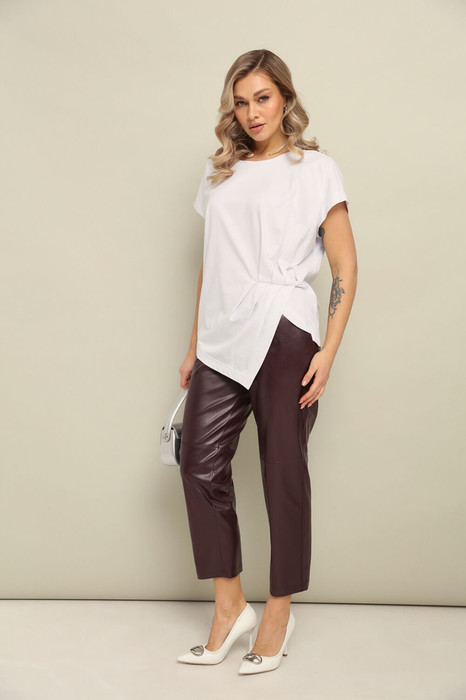 Лёгкая футболка с короткими цельнокроенными рукавами и оригинальным кроем. Низ футболки ассиметричный.