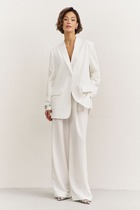 Комплект 2ка, состоящий из жилета и брюк. Жилет с отложным воротником и поясом. Перед жилета на запах с застёжкой на кнопки, на плечах декоративные паты. По бокам жилета выполнена имитация клапанов карманов. Брюки прямого силуэта на эластичной резинке по талии. По переду расположены карманы с наклонным входом.