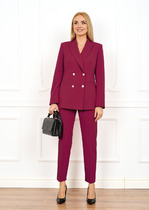 Костюм 2ка, состоящий из трикотажной блузки и брюк. Блузка свободного силуэта с V-образным вырезом горловины. Рукав блузки цельнокроеный. Ниже линии груди вставлена эластичная резинка. Брюки прямого силуэта с резинкой по талии.