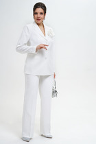 Костюм 2ка, состоящий из джемпера и брюк. Джемпер на молнии свободного силуэта из ткани двух видов. Рукава цельнокроеные чуть ниже локтя с имитацией манжеты. Джемпер облегченный, без подкладки и карманов, по низу на резинке. Брюки умеренного объёма прямого силуэта, талия на резинке. В боковых швах расположены карманы с наклонным входом.