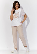 Костюм 2ка, состоящий из рубашки и брюк. Рубашка на пуговицах объёмного силуэта. Рукава дополнены шлейкой с застёжкой на пуговицу для сборки. Брюки широкого объема, прямого силуэта.