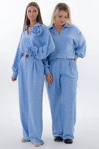 Брюки свободного силуэта с косыми карманами. Пояс брюк прямой. Застежка на пуговицы и молнию.