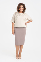Костюм молодежный состоит из футболки и брюк 7/8. Брюки с боковыми карманами и разрезами по низу. Футболка комбинированная со спущенной линией плеча.