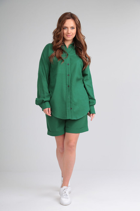 Актуальный и модный женский льняной комплект с шортами — тренд этого года, отличный вариант для летней жары. Костюм женский летний повседневный из льняного однотонного материала — рубашка с шортами. Рубашка прямая свободная с сорочечным воротником на стойке и центральной разрезной застежкой по переду на петли с пуговицами на цельной отстроченной планке. Плечо спущено, рукав втачной одношовный длинный, заканчивающийся приточной манжетой с застежкой на петлю-пуговицу. По спинке — двойная плечевая кокетка. Имеется накладной нагрудный карман. Шорты- бермуды длиной выше колена с цельнокроенной манжетой-отворотом по низу, на приточном поясе с плотной резинкой, благодаря чему посадка высокая и удобная. По переду карманы в боковых швах. Длина изделия по спинке 81 см (± 1 см), длина шорт по боковому шву- 56 см (± 1 см), по шаговому шву 27см (± 1 см). Изделие подойдет на рост 170см.