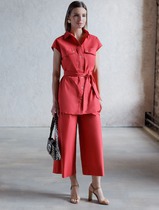 Универсальный и удобный женский брючный комплект для повседневной носки. Футболка свободного кроя, выполнена из мягкой приятной на ощупь хлопковой ткани. Округлая контрастная горловина, рукав укороченный, перед и спинка прямые. По переду изделие украшено принтом. Футболку с легкостью можно носить как навыпуск, так и заправленной. Брюки выполнены из хлопковой ткани средней плотности, длина 7/8, слегка звужены к низу, по верху на притачном поясе с резинкой по бокам. По переду с двумя боковыми карманами в швах и центральной застежкой на молнию и пуговицу. Универсальность кроя и легкая ткань сделают его любимым изделием Вашего гардероба в летний сезон. Длина футболки по спинке 60 см, длина рукава от плечевого шва 28 см. Длина брюк по боковому шву 96 см, по шаговому 72 см. Изделие подойдет на рост 170 см.