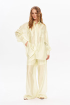 Костюм-тройка - это стильный и элегантный вариант женского делового костюма, состоящего из жилета, брюк и топа. Этот классический ансамбль придает образу серьезность и профессионализм, сохраняя при этом женственность и изысканность обладательницы. Костюм женский, брючный, выполнен из струящейся легкой вискозной ткани, состоит из распашного удлиненного жилета, свободных прямых длинных брюк и однотонного топа. Жилет прямого силуэта со съемным поясом с застежкой на полукольца, с пиджачным воротником с лацканами. Перед распашной с бортами встык, с двумя прорезными карманами с листочками. Спинка цельная. Плечо спущенное, по плечевым швам вставки из декоративной сетки. Брюки прямые, расширенные к низу, длинные, по низу с широкой подгибкой, по верху - на притачном поясе с резинкой. Топ без рукавов с квадратной горловиной по переду и рельефами. Спинка с центральным швом. Пройма и горловина спинки окантованы. Длина жакета по спинке73 см(+-1 см), длина рукава 27 см(+-1см), длина брюк по боковому шву 112 см(+-1 см), длина брюк по шаговому шву 82 см(+-1 см). Длина топа по спинке 55 см(+-1см)
