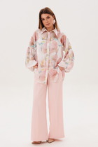 Женский комплект, состоит из бомбера и брюк, свободного покроя, выполнен из трикотажного полотна с эффектом «штрукс». Бомбер свободного покроя, с застежкой по переду на кнопки, горловина V-образной формы, отделана довязом контрастного цвета. Также на полочке обработаны прорезные карманы с листочкой, по низу бомбера втачен довяз контрастного цвета. Рукав втачной, длинный, из основной ткани, по низу на манжете. Брюки прямого покроя, на притачном поясе, выполнены из трикотажного полотна с эффектом «штрукс». Застежка по переду на молнию, также по переду брюк обработаны карманы в боковых швах, на заднем полотнище брюк обработана кокетка. Стильный и удобный комплект в спортивном стиле то, что нужно на каждый день!
