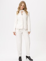 Костюм двухпредметный состоит из жакета и брюк. Элегантный дизайн костюма с брюками подарит комфорт и уверенность в себе. Жакет с центральной застежкой на 2 петли и пуговицы с прорезными функциональными карманами по переду. Рукав втачной двухшовный со шлицей декорированной пуговицами. Брюки прямые от линии калена, застежкой в боковом шве на потайную молнию. В комплект входит пояс с пряжкой. Костюм двойка отлично подойдет для офиса, для праздника, на каждый день для прогулок. Длина жакета 69 см, длина брюк 110 см