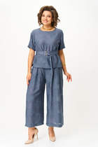 Комплект женский 2-ух предметный, состоящий из жакета и юбки. Жакет со спущенной линией плеча и цельнокроеным рукавом. По переду отрезная кокетка, воротник- стойка, рукава и планки. По переду настрочены нагрудные клапаны. Синка со средним швом. На левом рукаве о низу настрочена нашивка. Центральная застежка по планкам на 5 пуговиц и петель. Низ жакета можно регулировать с помощью эластичного шнура и фиксатора. Жакет без подкалки. Юбка на широкой обтачке А- силуэта, на подкладке. По переднему и заднему полотнищу заложены складки. По бокам расположены наклонные карманы. Застежка сзади на потайную тесьму-молни