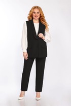 Элегантный женский костюм классического кроя. Комплект состоит из жакета и юбки-карандаш. Жакет полуприлегающего силуэта, спинка со средним швом, заканчивающимся шлицей. По конструкции предусмотрен воротник с лацканами. Застежка на две пуговицы. В передней части предусмотрены два прорезных кармана с листочкой. Рукававтачные, двухшовные, со шлицей на пуговицах. Юбка длиной миди, слегка зауженная к низу. Застежка на молнию в центральном шве.  Юбка оснащена крупным декоративным элементом в виде объемных цветов, расположенных по вертикали слева. В левой боковой части юбки размещен разрез от колена до низа, что обеспечивает свободу движения и добавляет элегантности. Жакет и юбка на подкладке.