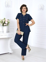 Стильный и элегантный костюм, состоящий из жакета и юбки. Жакет прилегающего силуэта выполнен по переду и спинке с рельефами, выходящими из проймы. На полочке обработаны карманы в рамку с клапаном. Спинка со средним швом. Рукав втачной двухшовный. Воротник пиджачного типа. Застежка центральная на петли с пуговицами. Юбка прямая, зауженная к низу, на притачном поясе с резинкой. Застежка на тесьму-молнию в среднем шве, который переходит в шлицу. Жакет и юбка на подкладке