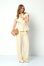 Женственный, изящный, уникальный комплект! Состоит из блузы и юбки. Главным акцентом и декором является съемный шарф, который завязывается в форме банта. Блуза прямого силуэта с нагрудной вытачкой, выходящей из бокового шва. Рукав втачной, одношовный, по низу с притачным воланом контрастного цвета. Вырез горловины V-образной формы. Застежка на петли-пуговицы. Юбка А-силуэта на притачном поясе, по бокам с резинками. Юбка на подкладке. Комплект дополнен съемным ремнем, что позволяет регулировать ширину по линии талии.