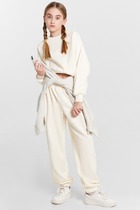 Костюм из кулирки для девочек футболка с длинным рукавом + шорты. Три расцветки — коралловая, мятная и серая. Принт спереди в виде надписей и цветов, полосатая вставка сзади, полосатая окантовка, длина рукавов ниже локтей. Полосатые короткие шорты со шнурком на поясе и карманами по бокам. Размеры от 26 до 40. Есть розница.