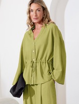 Свободная блузка с кулиской на талии изо льна с вискозой