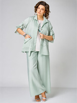 Блуза прямого свободного силуэта. По переду отделочная складка с декором в виде 3-х съемных брошей. По спинке средний шов. Горловина округлой формы. Рукава втачные, одношовные.