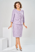 Костюм трехпредметный: состоит из верхнего и нижнего платьев, жилета. Верхнее платье макси свободного кроя прямого силуэта. Центральная застежка на петли и пуговицы. Спинка присборена в верхней части, с притачной кокеткой. Горловина оформлена воротником-стойкой. Объемный втачной рукав со спущенной проймой, присбореный по окату. По низу платья широкая отрезная оборка с густой сборкой. Нижнее платье-комбинация на регулируемых бретелях. Жилет удлиненный свободного прямого силуэта, воротник пиджачного типа. Линия низа по переду и спинке фигурная ассиметричная. Короткий рукав-крылышко. Талия фиксируется съемным ремнем из экокожи, для которого в боковых швах оформлены шлевки. Ремень идёт в комплекте к изделию.