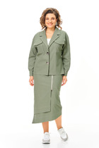 Костюм двухпредметный: состоит из джемпера и брюк. Джемпер из комбинированной ткани свободного силуэта. Рукав реглан. Воротник стойка. Брюки со стрелкой свободного кроя, верхний срез представлен широкой резинкой, с карманами.