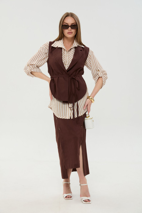 Совместные покупки Симферополь Женская одежда Костюмы, комплекты — Костюм NIKVA н957-3 шоколад и песочные полосы
