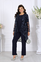Этот костюм — воплощение классики вечерней моды и станет незаменимым вариантом для женщин, которые ищут стильный и одновременно комфортный наряд на торжество. Воротник и лацканы из сатина придают изделию утонченный и благородный вид, что делает его подходящим для новогоднего корпоратива, свадьбы или юбилея. Высококачественные материалы и продуманное лекало обеспечивают не только привлекательный внешний вид, но и максимальный комфорт. Такой костюм идеально подойдет для полных женщин, которые ценят элегантность и удобство.