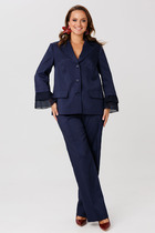 Этот нарядный костюм для полных женщин станет вашим универсальным решением — он уместен и на праздничном вечере, и в офисной обстановке. Модель гармонично сочетает в себе торжественность и лаконичность, поэтому одинаково эффектно смотрится как с лодочками и клатчем, так и с более сдержанными аксессуарами.