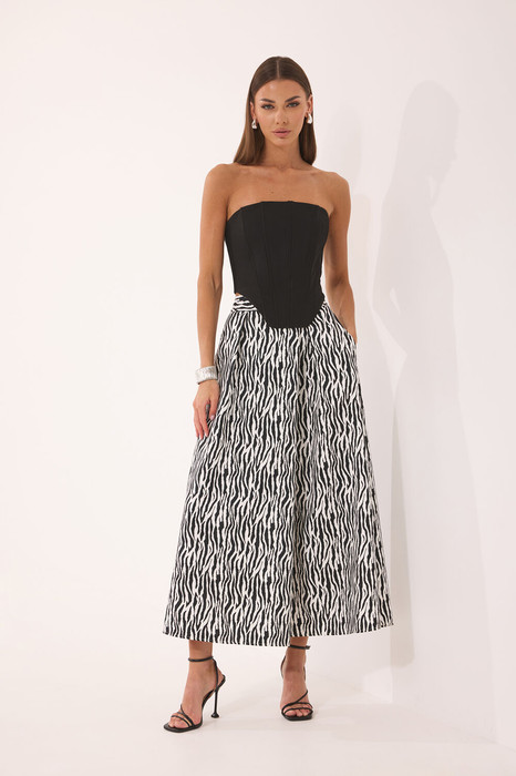 Комплект женский, состоит из топа-корсета из однотонной ткани и юбки из цветной ткани.