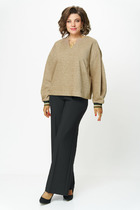 Модный костюм современного кроя для размеров +size, подчеркнет Ваш индивидуальный стиль и чувство вкуса. Костюм двойка: жакет и брюки. Жакет удлиненный прямого силуэта из ткани -елочка с тонкой полоской, жакет украшен стразами по всей ткани. Воротник с лацканами, застежка на петлю и пуговицу, полочка с рельефными вытачками, карманами в рамку и клапанами. Спинка со средним швом. Рукав длинный, двухшовный. Жакет полностью на подкладке. Брюки слегка заужены к низу, застежка на пуговицу и молнию, пояс с резинкой по спинке.