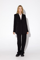 Жакет прямого силуэта, укороченный, со спущенными плечами. Застежка на петли-пуговицы доверху, горловина оформлена стояче-отложным воротником. Перед с нагрудной вытачкой с бокового шва и снизу с большими накладными карманами. Спинка со средним швом. Рукав одношовный, прямой, чуть ниже локтя, с фигурной линией низа, обработан обтачкой. Жакет без подклада.