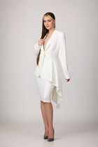 Длина жакета по спинке около 67 см в размерах 40-46 и около 69 см в размерах 48-52, длина рукава около 61 см. Длина брюк по боковому шву с поясом около 112 см в размерах 40-46 и около 113 см в размерах 48-52. Длина брюк по внутреннему шву около 81 см