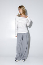 Текстильный костюм-двойка из укороченного приталенного жакета со складками и прямой макси-юбки с высоким разрезом.