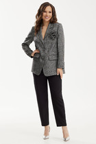 Детали: рубашка прямого силуэта, спущенная линия плеча, застежка на петли и пуговицы, длинные рукава с притачными манжетами, фигурный низ. Брюки с высокой посадкой на притачном поясе со шлевками, застежка на молнию и пуговицу, боковые карманы, передние половины с заутюженными стрелками и небольшими складками.