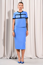 Костюм-двойка из жакета со шнуровкой и широких прямых брюк.