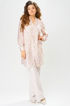 Длина жакета по спинке около 71,5 см, длина рукава около 62 см. Длина юбки по боковому шву около 43 см в размерах 40-46 и около 46 см в размерах 48-52