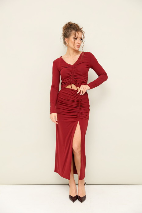 Комплект состоит из топа и юбки, выполнен из качественного бифлекса, эластичного, приятного к телу.