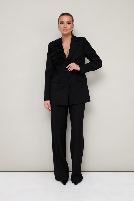 Эффектный 2-предметный комплект, состоящий из жакета и брюк, выполненный из костюмной ткани.
