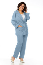 Стильный 2-предметный комплект, состоящий из жакета и юбки. Комплект выполнен из экозамши. Жакет современного прямого силуэта с центральной застежкой на петли и пуговицы. Горловина с рубашечным воротником с цельнокроеной стойкой. Спереди обработана кокетка и накладные клапаны. Рукава со спущенной линией втачивания плеча, двухшовные с притачной манжетой с застежкой на пуговицы. Спинка с кокеткой и вертикальными подрезами. Юбка в длине мини с разрезом по низу. Пояс обработан обтачкой. Застежка на потайную тесьму-молнию в вертикальном шве переда.