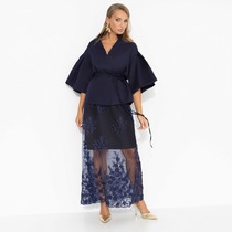 Элегантный 2-предментный комплект, состоящий из блузки и юбки, выполненный из струящейся ткани с деликатным блеском.