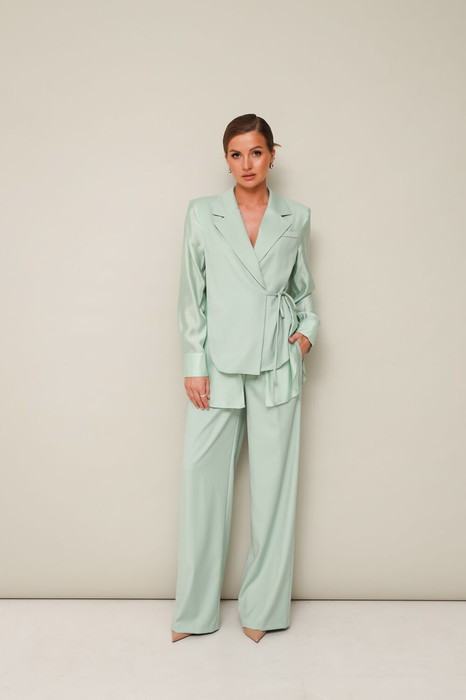 Элегантный 2-предметный комплект, состоящий из жакета и брюк, выполненный из костюмной и вискозной блузочной ткани.