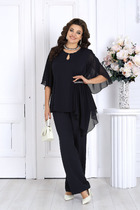 Комплект женские, относится к торжественной и нарядной одежде. Комплект женский, 2-х предметный, кардиган и платье. Кардиган женский, прямого силуэта. Перед с 2-мя нагрудными вытачками. Спинка цельнокроена. Горловина с V-образным вырезом с притачной планкой по краю борта и горловине. Кардиган без застёжки, фиксируется на съёмный пояс. Рукав втачной, одно шовный, длиной 3/4, по низу со сборкой и притачной манжетой. Кардиган без плечевых накладок. Платье женское, полу прилегающего силуэта, слегка расширено к низу, длиной до нижней части икры. Перед с 2-мя нагрудными вытачками. Спинка со средним швом и 2-мя таллиевыми вытачками. Горловина круглая обточная без воротника. Застёжка на потайную тесьму молнию в левом боковом шве платья. Платье без рукавов, проймы обточены. По краю пройм и краю горловины отделочная строчка-0,6 см.