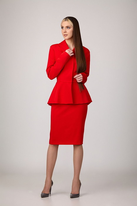 Жакет приталенного силуэта с рельефами по переду и спинке, отрезной по линии талии, с роскошной баской. Утонченности добавляет небольшой воротник округлой формы. Рукава - втачные, двухшовные.  Застежка на пришивные кнопки.