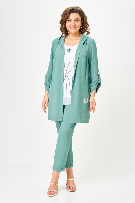 Костюм женский трехпредметный, состоящий из кардигана, топа и брюк.