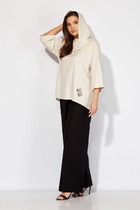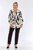 Джемпер прямого силуэта с длинным втачным рукавом. Горловина обработана бейкой. По низу рукавов притачная манжета. В боковых швах разрезы.
