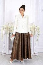 Жакет прямого силуэта с цельнокроенным рукавом летучая мышь, без застежки. По горловине отложной воротник на стойке. Спинка со сборкой из-под кокетки. В боковых швах обработаны разрезы. По низу рукава отложная манжета.